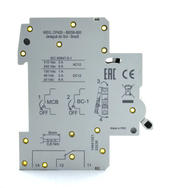 WEG BC-1 MDA, RDWS/RDWH serisi kaçak akım röleleriyle tam uyumlu, yüksek performanslı bir yardımcı kontak modülüdür.