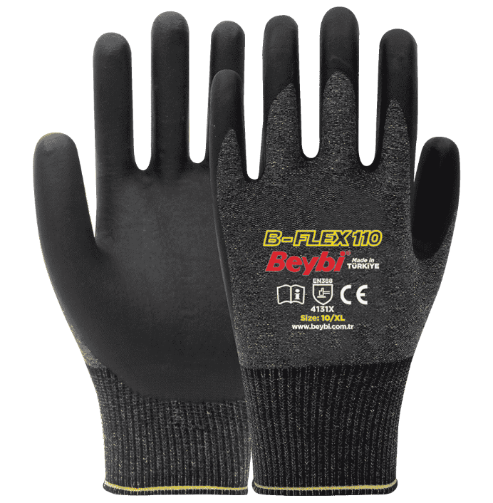 Beybi B-Flex110 1/2 Köpük Nitril Kaplı Likralı Örme Eldiven, hassasiyet, esneklik ve konforu bir arada sunan güvenilir bir iş güvenliği ürünüdür.