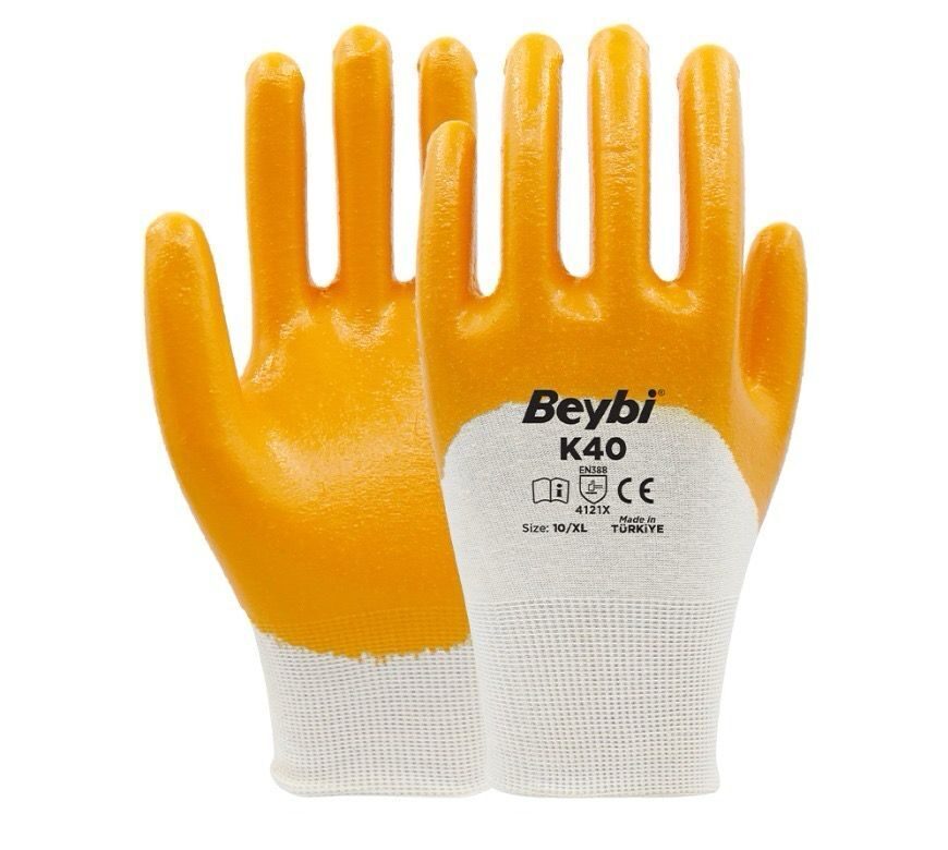 K40 3/4 Nitril Kaplı Pamuk Likralı Örme Eldiven, dayanıklılık, esneklik ve güvenliği bir arada sunarak profesyonel kullanıcılar için ideal bir iş güvenliği ürünüdür.