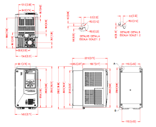 CFW900A04P8T4DB20Y2B – 2.2 kW Trifaze AC Motor Sürücü (IP66 – Frenleme Ünitesi Dahil)