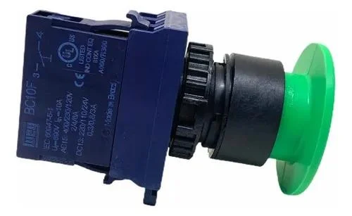 Açıklama: Yeşil renkli 40mm mantar başlık butonu, makinelerde operasyon başlatma veya durdurma için kullanılır.