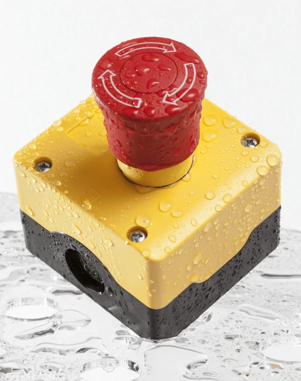 Çevir-çek reset mekanizması, durum göstergeli emniyet butonu, acil durdurma devreleri için.