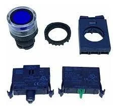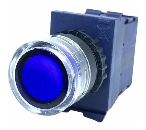 Açıklama: Şebeke gerilimi ile çalışan mavi ışıklı buton, operatör kontrol panellerinde yaygın olarak kullanılır.
