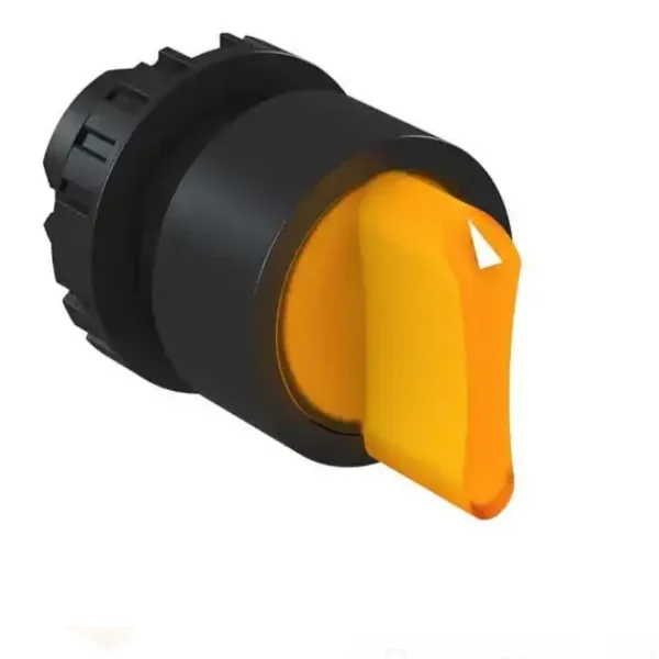 Açıklama: Sarı LED ışıklı, 90° dönen ve kalıcı konumda kalan mandal buton.