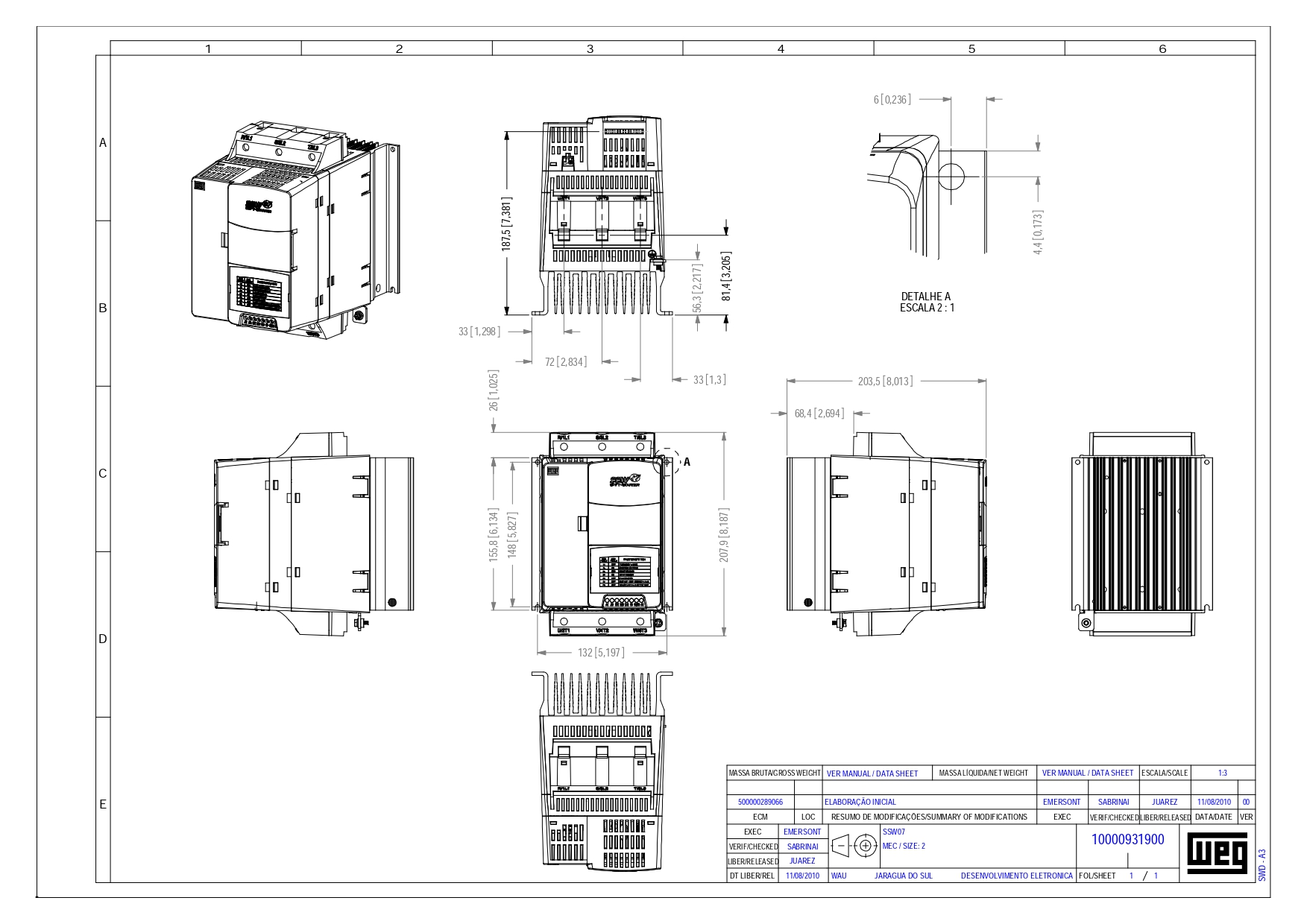 WEG SSW07 0171 T5 SZ – 90 kW / 171 A Trifaze Soft Starter